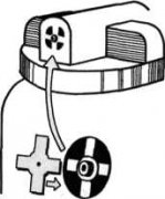 Если в распылитель из комплекта пылесоса вставить шайбу с калиброванным отверстием, то его можно использовать для тонкой подкраски автомобиля, бытовых приборов и т.д. Шайба с четырьмя лепестками (размер уточнить по месту) вырезается из толстой фольги и наклеивается на держатели сопла. В центре шайбы делается прокол иглой.