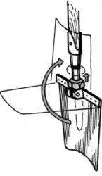 Случается, нижняя доска навесной книжной полки прогибается от тяжести книг и стекла выпадают. Чтобы избежать этой неприятности, нужно верхнюю и нижнюю доски соединить связью. В качестве такой связи можно использовать велосипедную спицу с гайкой. Загнутую часть предварительно нагревают и распрямляют.