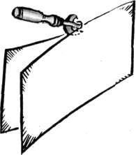 Не мучайтесь понапрасну, пытаясь извлечь старый шуруп из доски твердого дерева с помощью одной лишь отвертки: шлиц сорвете, а шуруп останется на месте. Зажмите лезвие отвертки разводным гаечным ключом, а ее жало вставьте в шлиц шурупа. Надавливая одной рукой на отвертку, второй поворачивайте ключ. Шуруп вывернется почти без усилий.