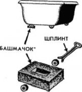 Эмалированная ванночка для купания малышей имеет, как известно, металлические ножки. Снабдив эти ножки резиновыми «башмачками», «убьете двух зайцев»: ванночку лишите возможности самопроизвольно перемещаться — скользить по мокрому полу, а ее ножки навсегда отучатся от «привычки» всюду оставлять царапины.