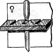 Пластмассовые направляющие стекол в шкафах и сервантах со временем высыхают, укорачиваются в тех местах, где они прибиты гвоздями. Чтобы предупредить эту неприятность, надо в местах крепления сделать продольные прорези, компенсирующие перемещение направляющих.