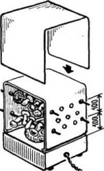 Советуем при монтаже слайдов в рамки воспользоваться отрезком ненужной фотопленки длиной около 10 см. Пленку перегибают пополам эмульсией наружу, место сгиба вставляют в щель рамки и между концами пленки помещают слайд на половину его размера. Затем, прижав слайд через кадровое окно, передвигают его на место и пленку удаляют.