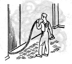 Покрывать паркетный пол лаком станет намного легче и быстрее, если вместо кисти воспользоваться двумя резиновыми губками, зажатыми в тряпкодержа- тель. Губки не оставляют полос, как кисти, позволяют работать стоя, на удалении от свежего лакового слоя, где концентрация паров растворителя максимальна.