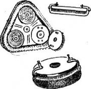 Любителям блестящих полов рекомендуем использовать опыт применения суконки для окончательного наведения лоска на вычищенную обувь. Вырезав из грубого сукна суконки (по размеру щеток электрополотера) и пристегнув их с помощью резиновых колец, как показано на рисунке, включайте полотер и приступайте к завершающей стадии работы — шлифовке натертого пола.