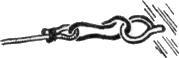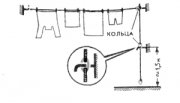 Для сушки белья в ванной комнате удобно пользоваться пластиковыми шнурами от ненужных детских прыгалок. Достоинство этого шнура состоит в том, что после небольшого провеса под тяжестью белья он сразу же принимает свое первоначальное, натянутое положение. Крепить шнуры можно карабинами к кольцам, закрепленным постоянно на стенах. Карабины — они продаются в спортивно-охотничьих магазинах — позволяют при ненадобности легко снимать шнуры.
