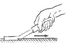Это несложное приспособление поможет домашнему мастеру сделать в штукатурке желоб для скрытой проводки. Стальная трубка диаметром, равным ширине желоба, и длиной около 25 см примерно посередине надпиливается под острым углом до половины диаметра и отгибается. Режущая кромка затачивается круглым напильником. На отогнутый конец трубки насаживается деревянная рукоятка.