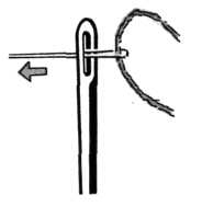 Толстую распушенную нитку легче вдевать в иголку с помощью с