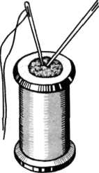Кусочек поролона, вставленный в отверстие катушки с нитка