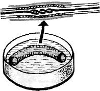 Основная беда веревочных обвязок саженцев заключается в том, что бечевка перетягивает кору и от этого нарушается питание деревца. Если саженец прикреплять к колышку с помощью резинового кольца так, как показано на рисунке, то растение не пострадает.