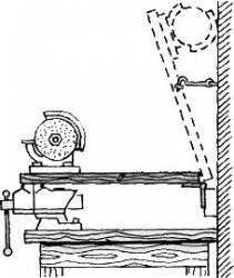 Очистка точила. Мягкие металлы быстро засоряют точильный круг, особенно если он сде-.П61Н из мелкозернистого абразива!. Чтобы освободить круг от забившего его металла, мастера-точильщики используют старое ножовочное полотно. При этом стачивается очень мало абразива, и точильный круг не портится. Во-зь.мите ножовочное полотно, приложите его к подручнику точила и слегка прижимайте к кругу