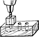 Если в деревянных деталях требуется просверлить много отверстий строго под углом 90°, выручит несложное приспособление. Это кубик из твердой древесины, в котором с большой точностью просверливают эталонное отверстие. С помощью такого кондуктора можно быстро и качественно выполнить всю последующую работу.