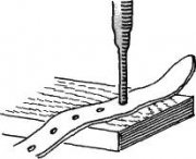 Кусок использованного металлического стержня шариковой .ручки может служить инструментом для получения круглых отверстий в ремешке наручных часов (пишущий узел) или в поясном ремне (утолщенный конец стержня). Чтобы отверстия получались ровными, режущие грани пробойника заточите на бруске, а под ремень положите дощечку. По пробойнику слегка постукивайте молотком.