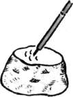 Для черчения тушью и выполнения оформительских работ удобнее пользоваться линейкой, если в нее воткнуть несколько парных кнопок (одну в отверстие другой, остриями в разные стороны) так, чтобы линейка опиралась на бумагу их остриями. Благодаря этому линейка не скользит и между ней и бумагой создается зазор. Того же результата можно добиться, прикрепив к линейке несколько канцелярских скрепок