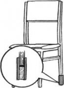 Чтобы школьник правильно сидел за столом, приходится иногда подкладывать на стул книги, подушки и т. д. А между тем можно увеличить высоту стула за счет наращивания ножек. Деревянные вставки вкладываются в отрезки толстостенного резинового шланга, и эти отрезки надеваются на ножки стула. Со временем вставки можно укоротить, а потом и снять.