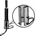 Велосипедный насос сделан так, что накачать им шину — трудная работа, с которой справляется только крепкий человек. Облегчить ее можно с помощью простого приспособления. Из листа металла делается обойма, охватывающая корпус насоса. В ее средней части ставится фиксатор, не дающий насосу упереться в землю. В нижней части устанавливается откидная опора. Такое приспособление позволяет удерживать насос ногой и качать руками — дело облегчается и ускоряется во много крат.