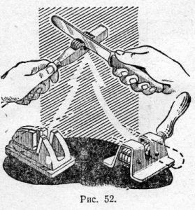 Для точки ножей наша промышленность, кроме обычных брусков, выпускает также очень удобные дисковые ножеточки (рис. 52).
