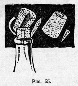 Если горлышко бутылки слишком свободно и нужно увеличить пробку, можно обвернуть ее полосками тонкой бумаги, смоченными в яичном белке, и вставить в бутылку, пока белок не засох.