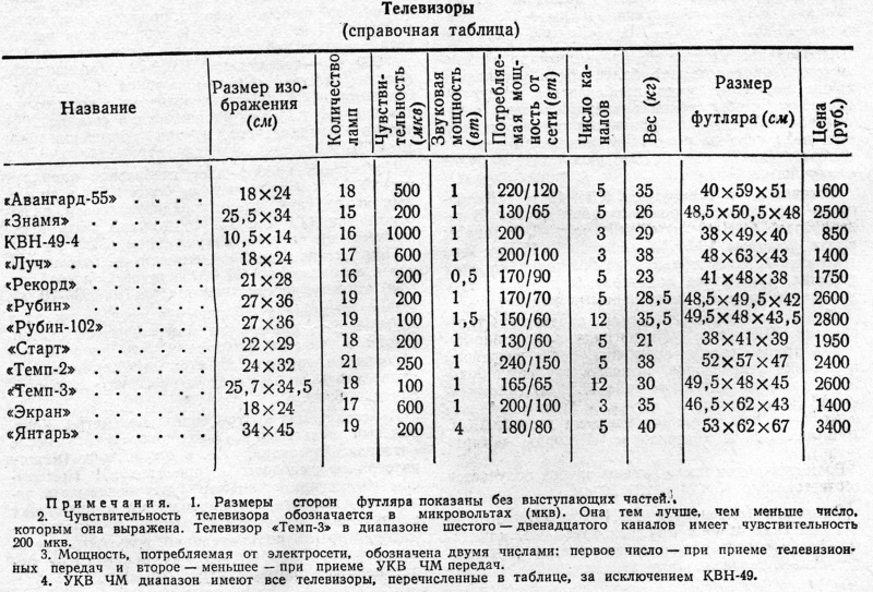 Таким образом, наилучшим расстоянием, с которого следует смотреть изображение на экране телевизора КВН-49, будет примерно 70 см, «Экран», «Луч», «Авангард» и др.—125, «Рекорд» — 150, «Темп» — 170, «Знамя» — 180 см.