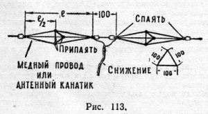 Устройство простой широкополосной антенны показано на рисунке 113.