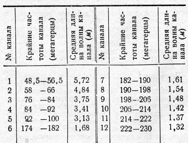 Выпущенные и выпускаемые нашей промышленностью телевизоры имеют настройки на один, на три, на пять и на двенадцать каналов. Если телевизор имеет настройку только на один канал, то он может быть использован лишь в том городе, где имеется телевизионный передатчик, работающий в этом канале. Если телевизор имеет три настройки, предположим, на первый, второй и третий каналы, то он может быть использован, например, в Ленинграде, Москве и Киеве, потому что телевизионные передатчики в этих городах работают в первом, втором и третьем каналах. Для использования этого телевизора в другом городе, где передатчик работает в шестом канале, телевизор необходимо отдать в мастерскую для перестройки на шестой телевизионный канал.