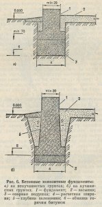 Материалом для фундаментов служат: бутовый камень, бутобетон, монолитный бетон, бетонные блоки, керамический полнотелый кирпич-железняк и др.
