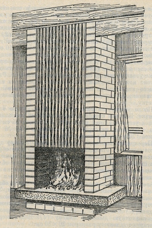 Сооруженные камины просушивают в. течение 15— 25 дней при температуре воздуха около 20° С. После этого их сначала несколько раз слегка протапливают и затем уже вводят в эксплуатацию. Для. топки камина подойдут сухие березовые, осиновые или ольховые дрова, причем предпочтительнее осиновые. Они горят ровным белым пламенем и не коптят. Особенно приятный аромат дают поленца или сухие ветви можжевельника, вишни или яблони. Поленья длиной 30—40 см укладывают пирамидой, что создает оптимальные условия для медленного сгорания дров, при котором рационально используется теплота сгорания.