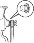 Удаление из патрона застрявшего цоколя. Нередко бывает, что перегоревшую лампу не удается вывернуть из патрона. В таком случае надо выключить лампу, обмотать колбу в несколько слоев толстой тряпкой, чтобы не порезать руку, если колба лопнет, и попытаться вывернуть лампу. При такой попытке лампа либо вывертывается, либо у нее отрывается баллон, а цоколь остается в патроне. В последнем случае для вывертывания цоколя из патрона придется прибегнуть к помощи плоскогубцев. Край цоколя, выступающий из патрона, надо захватить плоскогубцами и, придерживая патрон рукой, вывернуть цоколь, вращая его плоскогубцами против часовой стрелки.