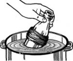 Чтобы прикрепить ламповую горелку к стеклянному или фаянсовому резервуару, надо развести порошок гипса до образования густой кашицы, быстро заполнить ею углубление в горелке, вдавить в него край резервуара и дать засохнуть. Можно также расплавить в металлической ложке над легким огнем кусочек квасцов, залить ими выемку горелки и вдавить в нее край резервуара. Когда квасцы застынут, горелка будет прочно прикреплена.
