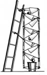 7. Дымовые трубы выводятся из верхнего этажа выше карниза крыши на 1 л, а на конце железной трубы делается колпачок — флюгарка.
