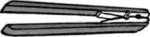 Схема замка показана на рисунке 3. Загнутая пластина, иногда прикрытая сверху другой пластиной, образует ящичек. На пластине или в ящичке монтируется весь замок. Язычок (1), кроме части, появляющейся из прорези, когда замок заперт, имеет еще скрытую внутри деталь в виде длинной пластинки с узким отверстием посредине. В отверстии свободно ходит шпенек (7), укрепленный на основной пластинке. На пластинке язычка слева есть выемка, в которую входит бородка ключа. Перед выемкой приклепан круглый шпенек (3), на который надевается ключ (2).