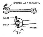 Пробку с клином (рис. 12) вложить в отверстие и вбивать легкими ударами молотка. Когда клин дойдет до дна отверстия, он начнет постепенно распирать пробку в стороны; она пойдет туже, и ее нужно загонять сильными ударами молотка. Пробка, забитая по этому способу, держится очень прочно.