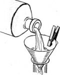Когда есть необходимость, чтобы пробка держалась особенно крепко, рекомендуется поступить так: узкий конец пробки слегка надколоть и в щель вставить тонкий клин длиной 1—2 см.