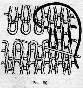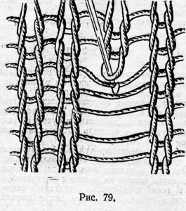 На рисунках 79 и 80 показана техника подъема петель на чулке.