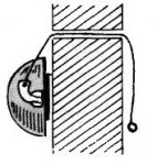 Маленькие петли для шкатулок можно сделать из двух кусков проволоки и двух шайб. Один кусок сгибают в форме буквы П, а другой навивают на него спиралью. Концы проволоки надо заострить и сделать на них насечку.