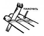 Мотки, не туго перевязанные, надо нанизать на крепкий шнур или тесьму достаточной длины, чтобы, взяв шнур за концы, можно было легко и удобно поворачивать и извлекать мотки. Концы шнура следует привязать к ручкам сосуда, где происходит крашение, чтобы они не погружались целиком в раствор.