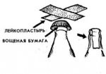 Кожицу вокруг лунок ногтей нужно сначала сдвинуть костяной или деревянной лопаточкой (продается в аптеке), а затем осторожно подрезать тонкими ножницами. Следует предварительно в течение нескольких минут попарить концы пальцев в очень мыльной воде. Тогда кожица станет мягкой и будет подрезаться без труда. После этого полезно смягчить кожицу вокруг лунок глицерином или кремом. Случайные порезы тут же смазать йодом.