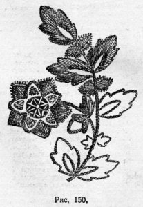 При машинной вышивке, так же как и при ручной, разные детали в одном и том же рисунке можно вышивать различными швами (рис. 150).
