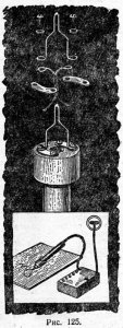 Аппарат для выжигания можно сконструировать и своими силами (рис. 125). Берут электрошнур, деревянную рукоятку (можно от какого-либо инструмента) длиной 10—15 см я проволоку, используемую в спиралях обычных электронагревательных приборов.