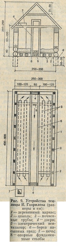 Расход электроэнергии за сезон (май — август) при круглосуточной работе вентилятора составляет 80— 90 кВт-ч. Минимальная ночная температура воздуха на 4,5—5° С выше, чем под обычным пленочным укрытием.